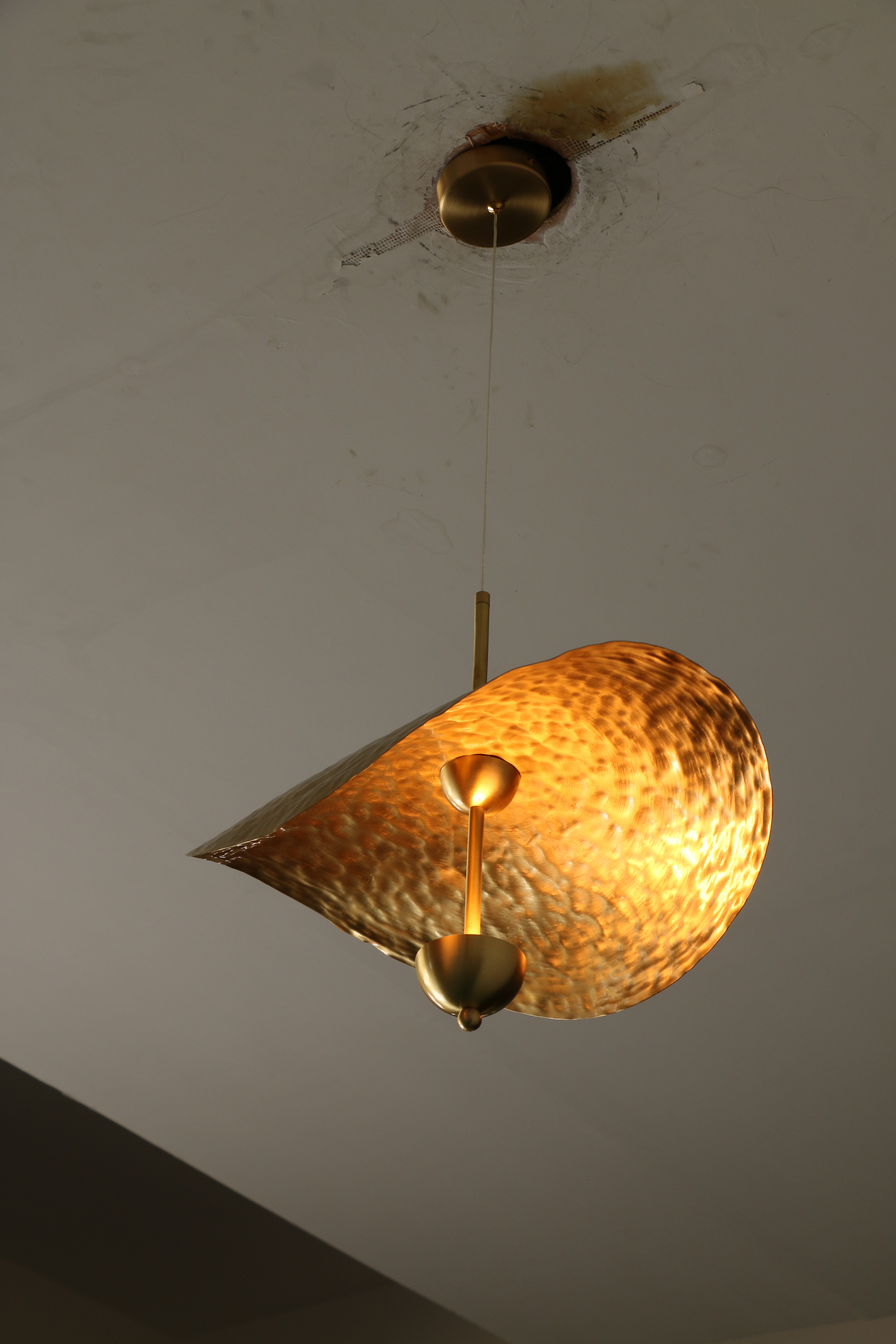 modern LED pendant light with brass lotus design