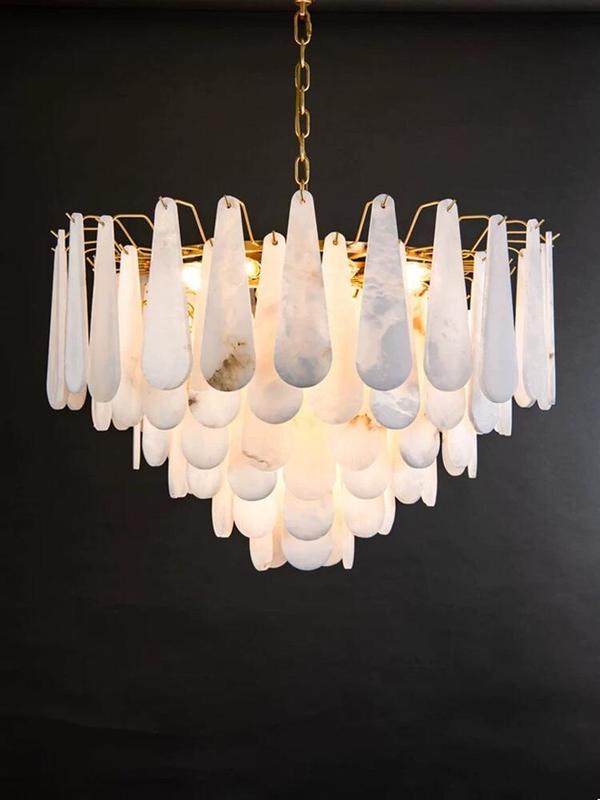 Invest in a timeless piece of art with this custom alabaster chandelier. This luxury pendant light is a unique ceiling decoration designed to elevate your living room. Unlike mass-produced fixtures, each chandelier is a bespoke creation, reflecting your individual style and taste.