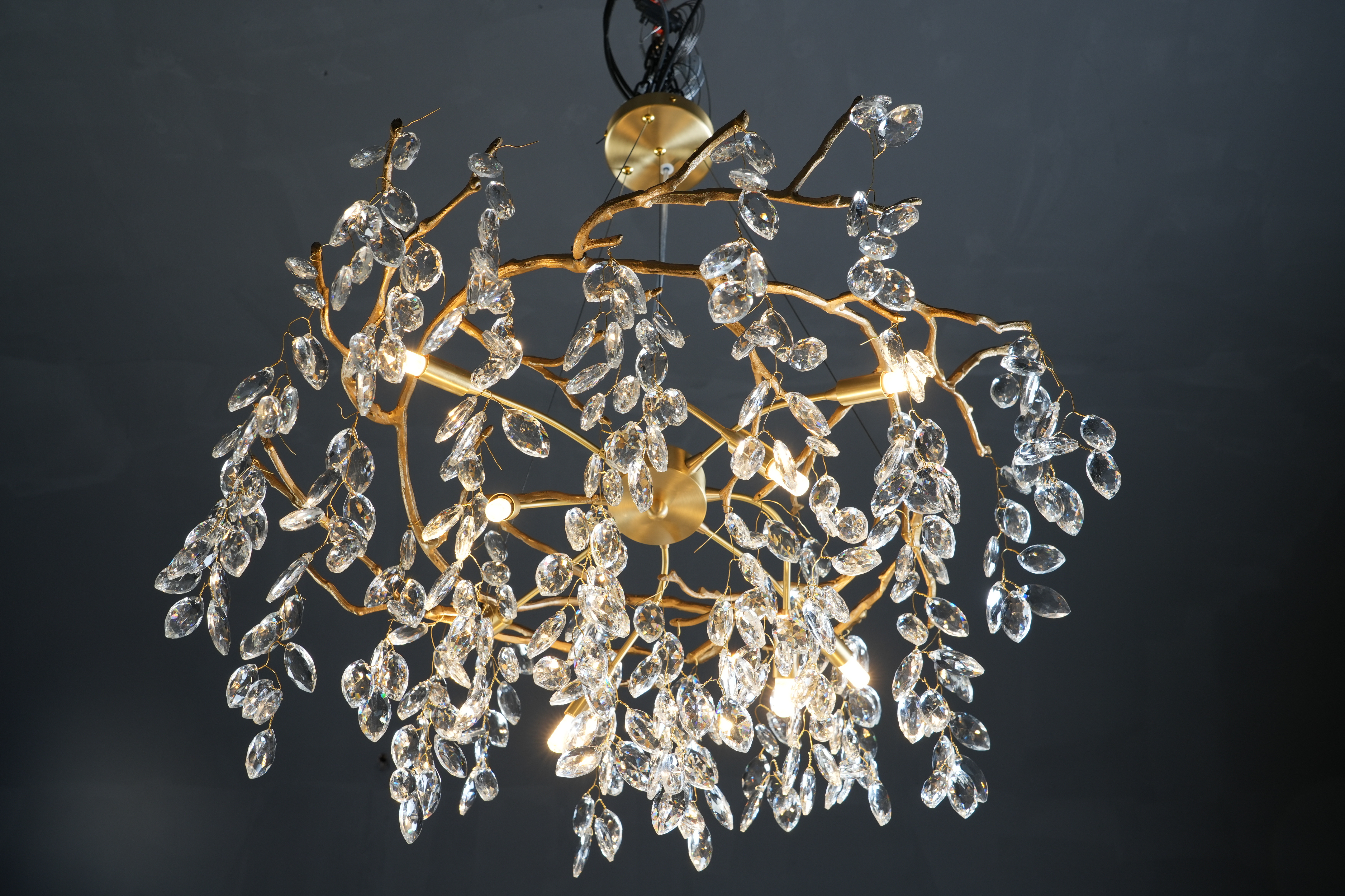 Decoration Chandelier Duplex Living Room Leaf Branch Crystal Chandelier Round Villa Hotel Simple Atmosphere French Custom Luxury 0